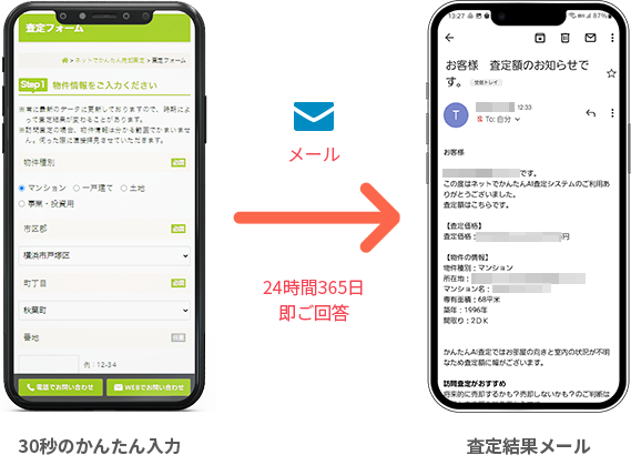 ※かんたんAI査定は物件データベースを元に自動で価格を計算し、ネットで瞬時に査定結果を表示させるシステムです。