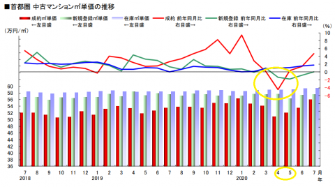 2020年の緊急事態宣言下では、前年同月比にして5%前後価格が落ちました。