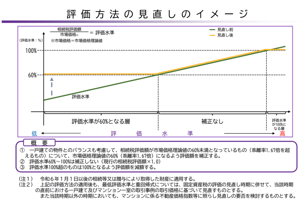 このような「節税効果の差」にメスを入れるため、国税庁は次のような是正案を公表しました。この是正案をもとに改正案が作られ、パブリックコメントなどにかけられた後、2024年1月1日以降に相続や贈与によって取得した財産に適用される予定です。