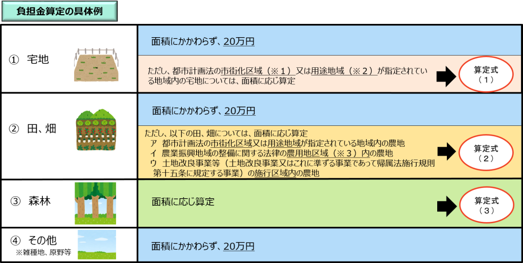 負担金額は一概にいえませんが、市街区区域や用途地域が指定されている土地を除き、宅地は面積にかかわらず20万円です。立地などによっては100万円以上の負担金が発生する可能性もあります。